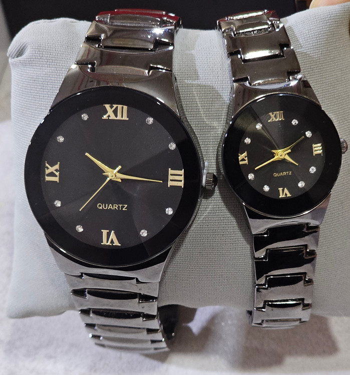ساعت های ست زنانه و مردانه شیک صفحه گرد ضد رنگ و مناسب برای کادو کار شیک و اقتصادی موتور قابلیت تعویض دارد جنس بند فلزی می باشد