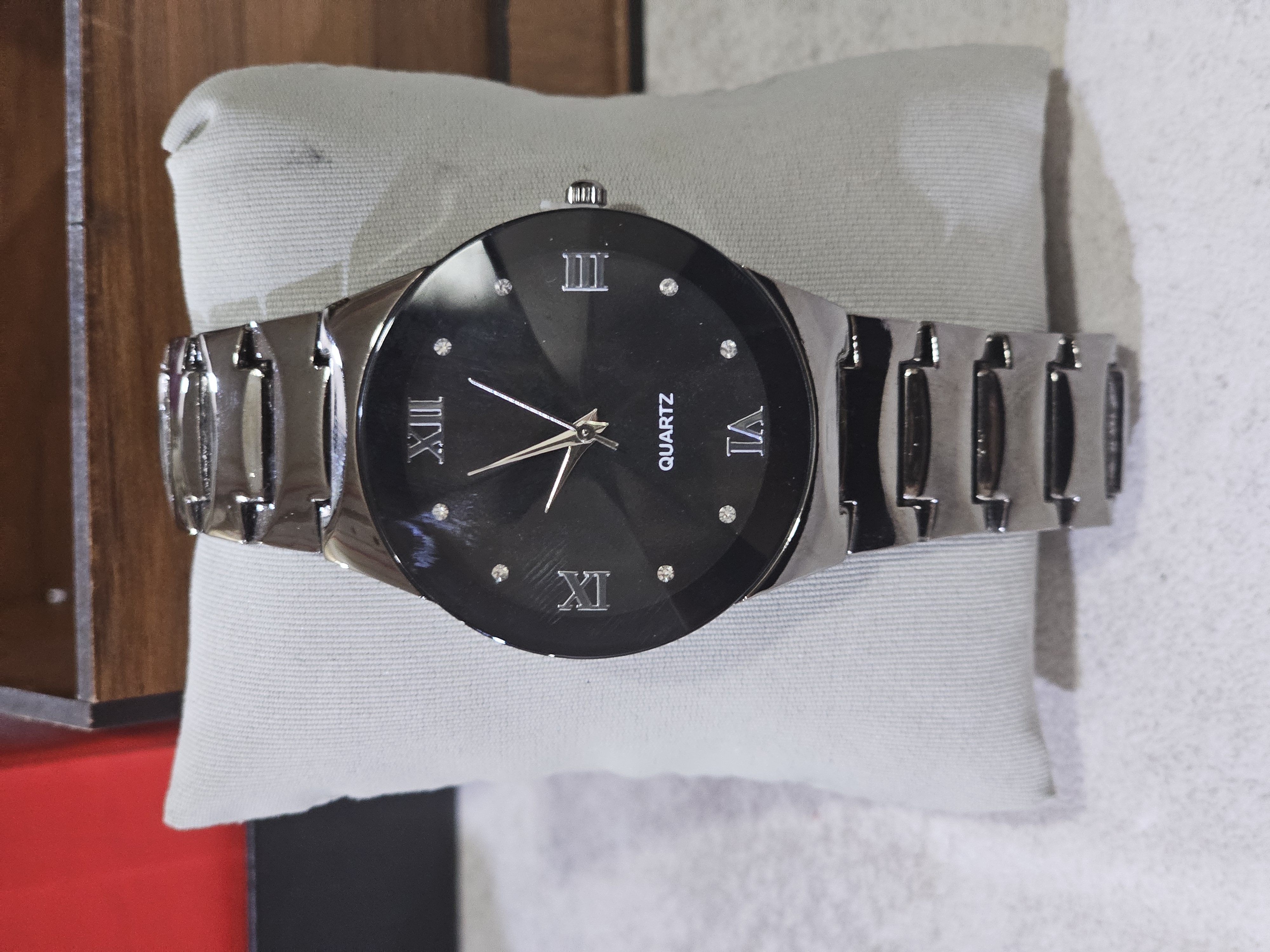 ساعت های ست صفحه گردمشکی موتور کوارتز بدنه فلزی
