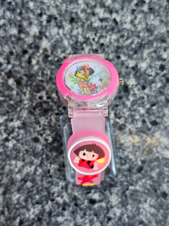 ساعت بچگانه دخترانه چراغ دار طرح دورا رنگ صورتی بندسیلیکونی انعطاف پذیر مقاومت دربرابر شستشوی دست باقیمت استثنایی و ویژه جنس عالی و با کیفیت